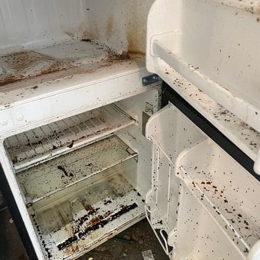 The home was left with dusty blinds, stained baseboards, kitchen grease build-up, and bathroom grime after a long tenancy.